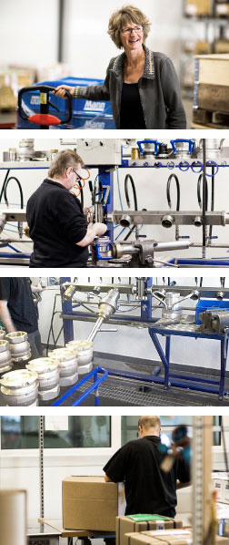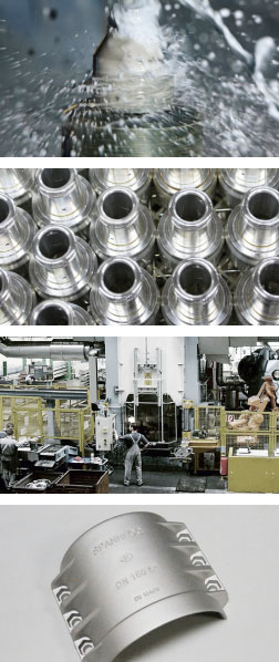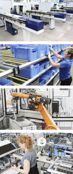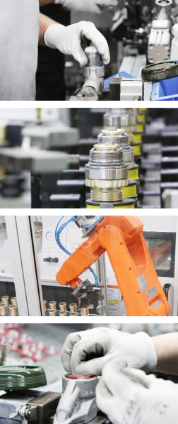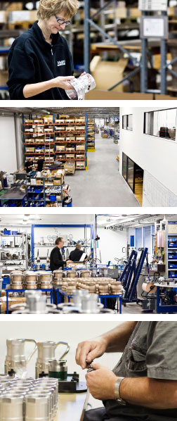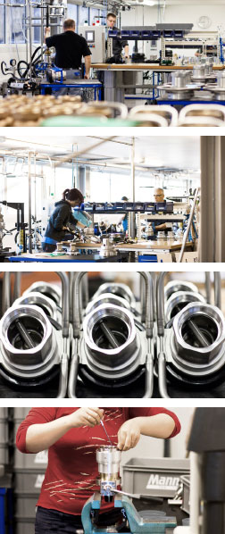 ELAFLEX HIBY Plettenberg fully plays to its strengths. Complex products of aluminium, cast bronze and gunmetal are manufactured using the latest production technology and quality assurance processes. The plant is exemplary for its high level of vertical integration including mechanical processing and assembling in the one-piece-flow system, as well as for its large testing facilities. An efficient work and material flow process completes the performance capabilities.